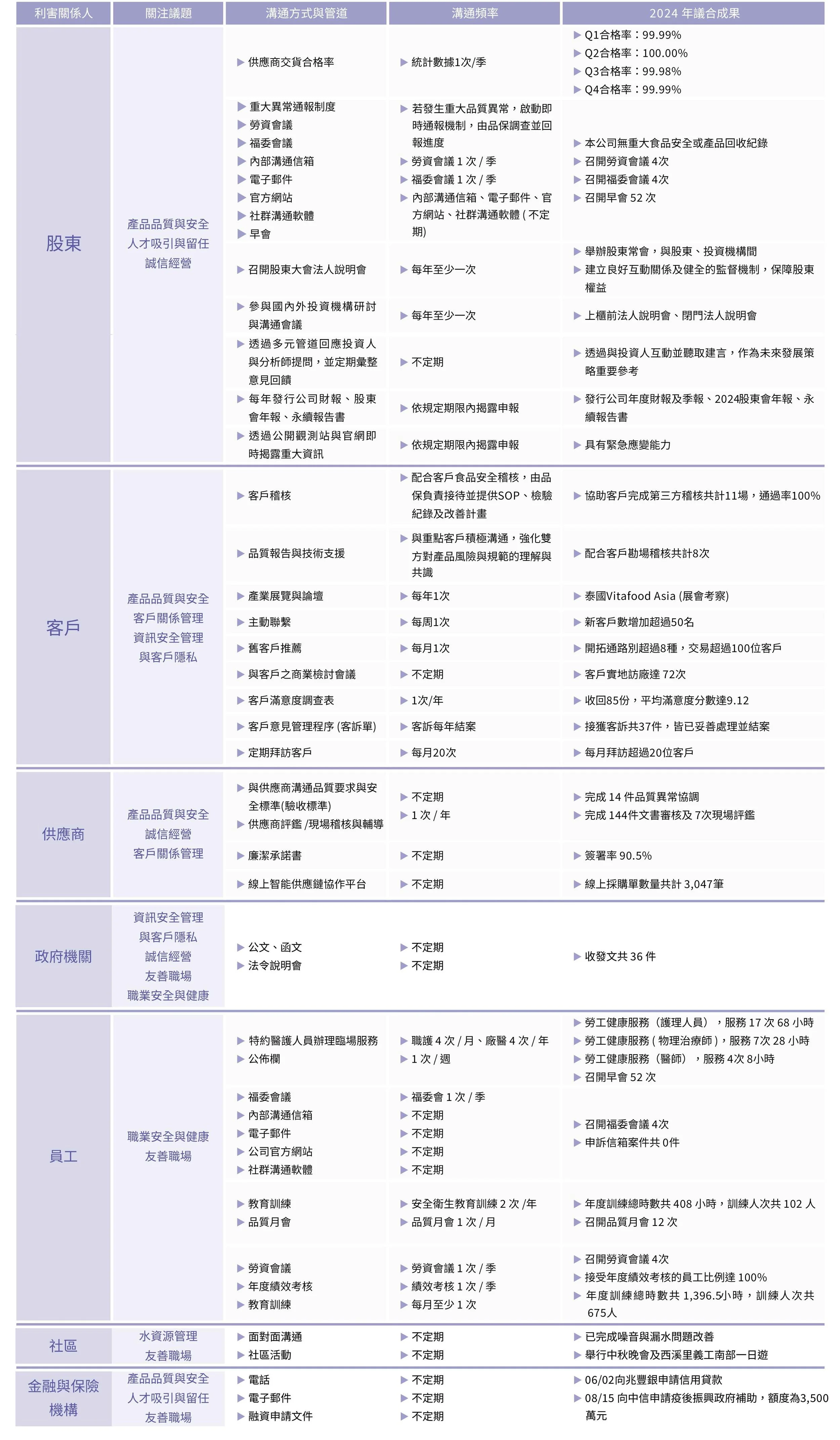 漢田與各類利害關係人均設有專屬溝通管道,針對重要議題持續進行交流與討論。